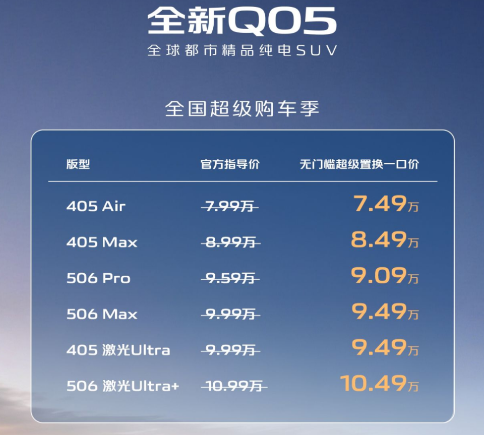 那么,在7-10万这个竞争白热化的价位段,它面对的主要对手是谁?无疑是比亚迪元UP、哪吒AYA等车型。和它们相比,全新Q05的核心优势在于一个非常清晰的“水桶”形象和价格杀伤力。7.49万的起售价,直接击穿了心理防线。在相近价格下,它的车身尺寸和轴距有一定优势,意味着车内空间可能更从容。全系标配的宁德时代电池和3C快充能力,是它打在公屏上的硬核配置,给消费者很强的品质安心感。虽然智能驾驶方面可能不是它的最强项,但在这个价位,把续航、安全、基础品质和价格做到极致平衡,本身就是最成功的策略。